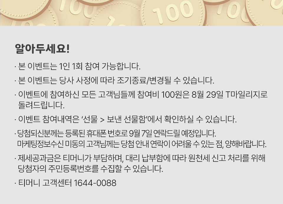 보유하신 티머니 잔액에서 결제되며 동시에 자동응모 됩니다.